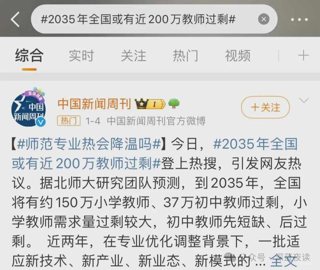 北师大团队预测,到2035年前后,小学与初中阶段将出现明显教师过剩。